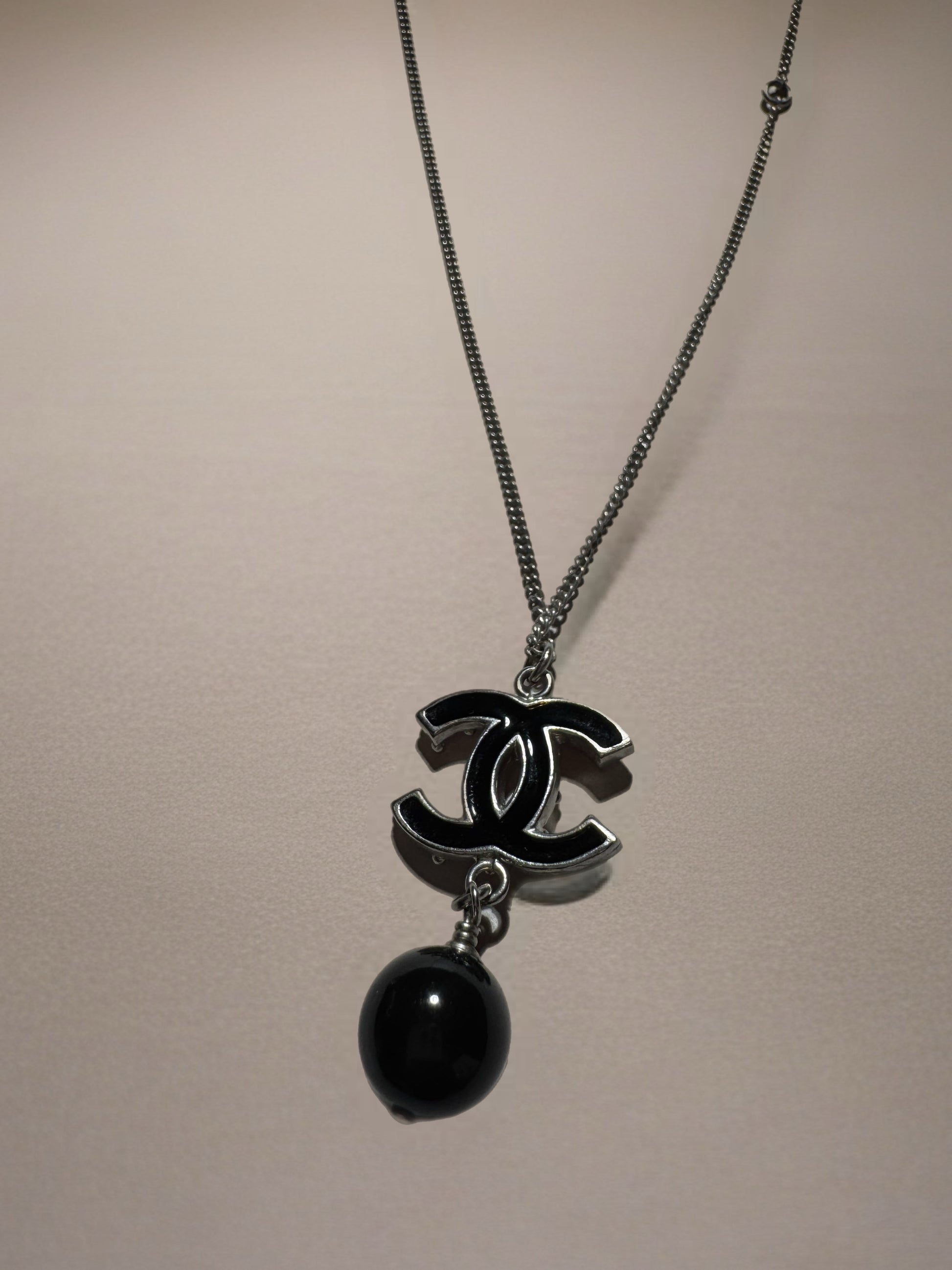 Chanel - Chanel CC black and Silver Camellia Necklace