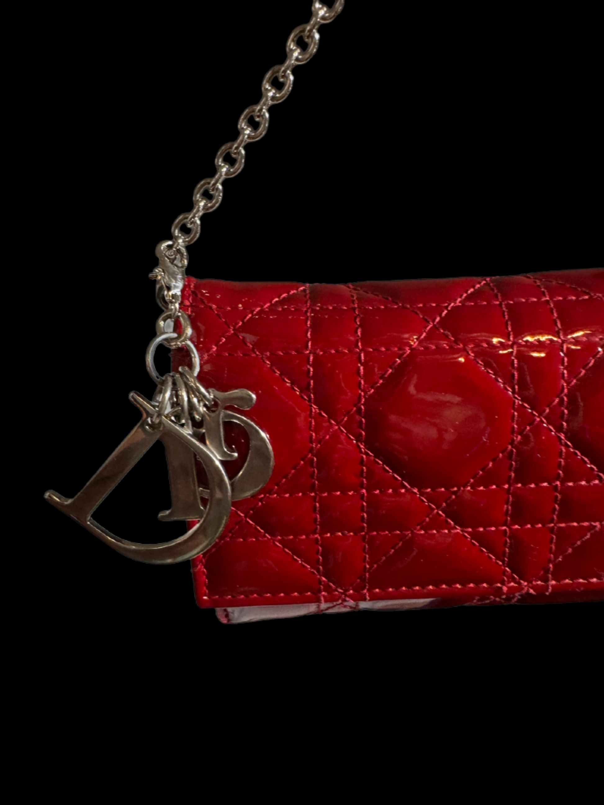 ✨ Christian Dior Red Patent Cannage Wallet on Chain - Luxurious Statement Piece
