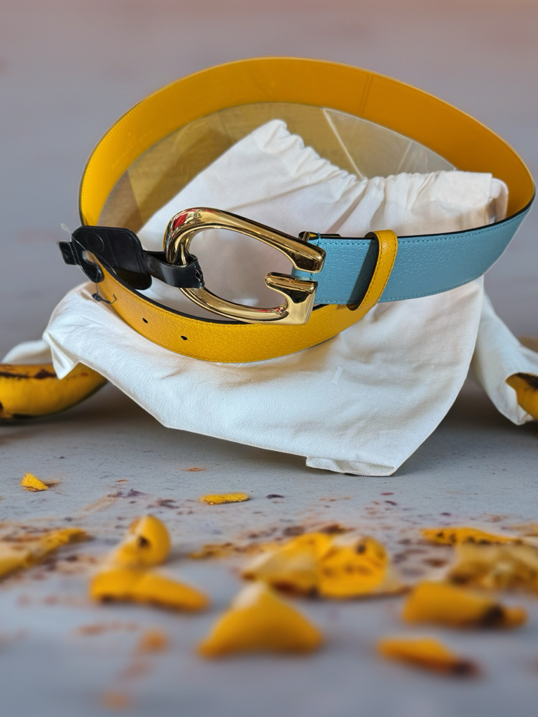 Gucci - Gucci Blue/Gold Two Tone G Buckle Leather Belt Size 85