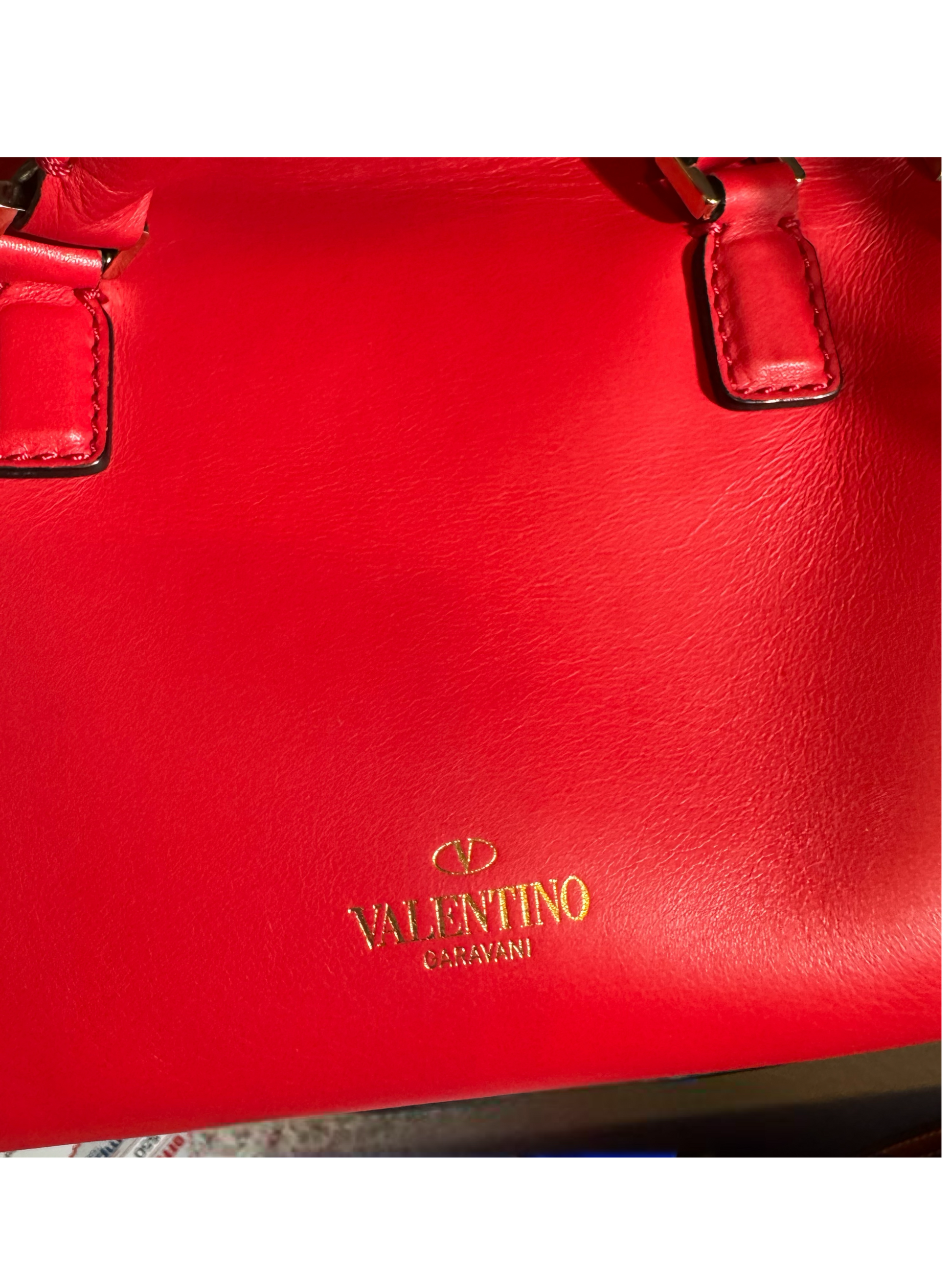 ๐ Valentino Garavani Red Rockstud Leather Tote